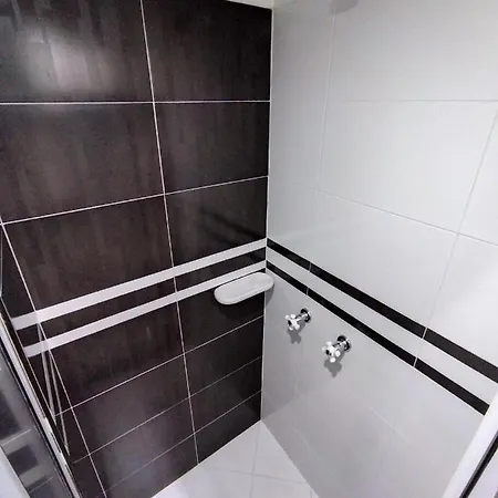 这处住宿地方的客房铺有大理石地板,浴室配独立卫生间和淋浴.